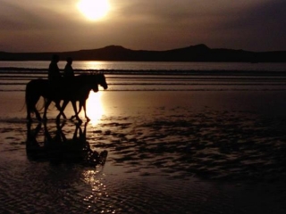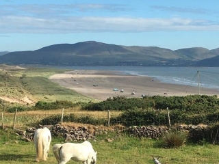 From Camp village we head further out on the Dingle peninsula some 11 km west of Tralee to Derrymore (Irish: Doire Mór, meaning ‘great oak grove’). Derrymore lies between the Slieve Mish mountains and the Atlantic Ocean. Its sandy shore area is a nature reserve supporting many rare plant communities and is an important high-tide roosting area for shore birds. After lunch we cross the Finlglas River on towards Cathair Con Rí via an ancient bog route with spectacular views over the Atlantic Ocean. We pass through Gleann Na nGealt, also know as ‘The Valley of the Mad’. Legend has it that its name is associated with ‘Gall’, a king of Ulster, who was cured of madness when he drank from the well and ate the watercress growing in its waters. Ancient history also tells of ‘Bolcan’ King of France who was also restored to full health when he drank from the well fleeing from the battle of Ventry harbour. Scientific studies of the well water have shown up high levels of metals including lithium which may in some way explain the supposed beneficial effects of the water. We will ride the surrounding lanes and bohareens which offer stunning views of Cathair Con Rí, Dingle Bay and the Ring of Kerry until we reach Inch Beach. Inch beach is a world renowned strand that attracts all types of sport enthusiasts. It is terrific for surfing, snorkeling, fishing, gliding, and of course horse-riding. However, the strand was first made famous for its part in the film Ryan’s Daughter. On arrival we head for spectacular gallops along its long sandy beach, followed by a quick dip to cool the horses after a long day.